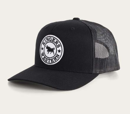 Ringers Western Signature Bull Trucker Cap Black with Black & White Patch