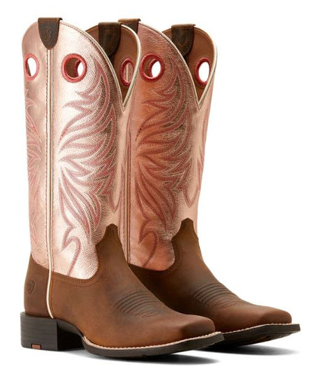 Ariat SS24 Womens Round Up Ryder Distressed Brown/Golden Pink