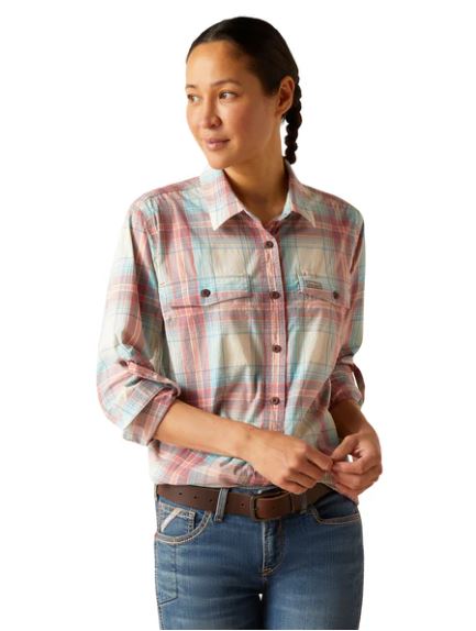 Ariat SS24 Womens Rebar Made Tough Durastretch Shirt Vanilla Ice Plaid