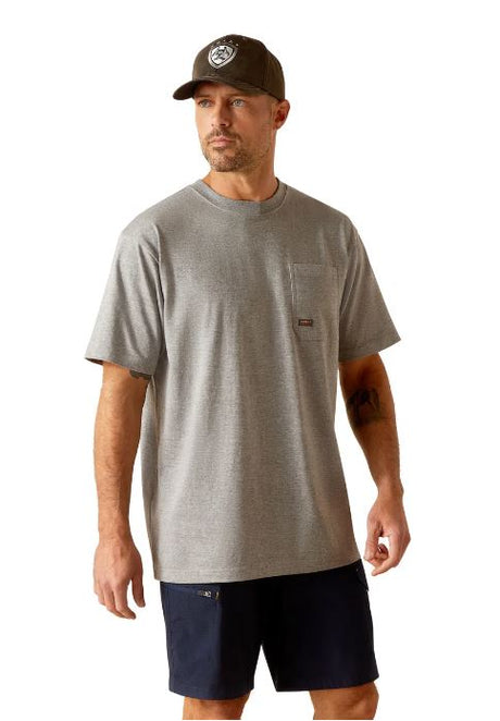 Ariat SS24 Mens Rebar Cotton Strong Burning Rubber SS T-Shirt Heather Grey