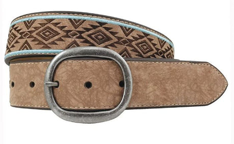 Roper Womens Belt 1.1/2" Synthetic Leather With Aztec Embroidery Tan