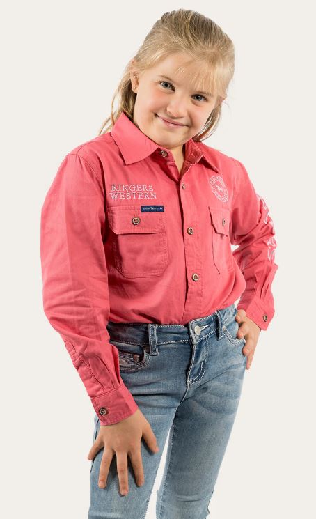 Ringers Western Kids Jackaroo Work Shirt Camelia Rose/Pink