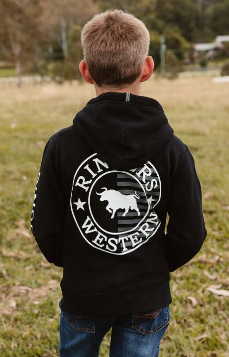 Ringers Western Kids Jackaroo Flag Pullover Hoodie Black