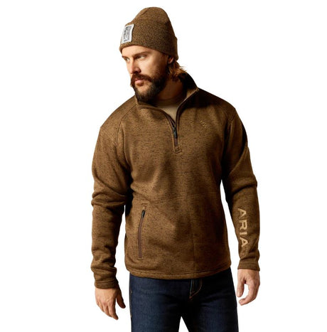 Ariat AW25 Mens Caldwell Logo 1/4 Zip Sweater Dark Brown Heather