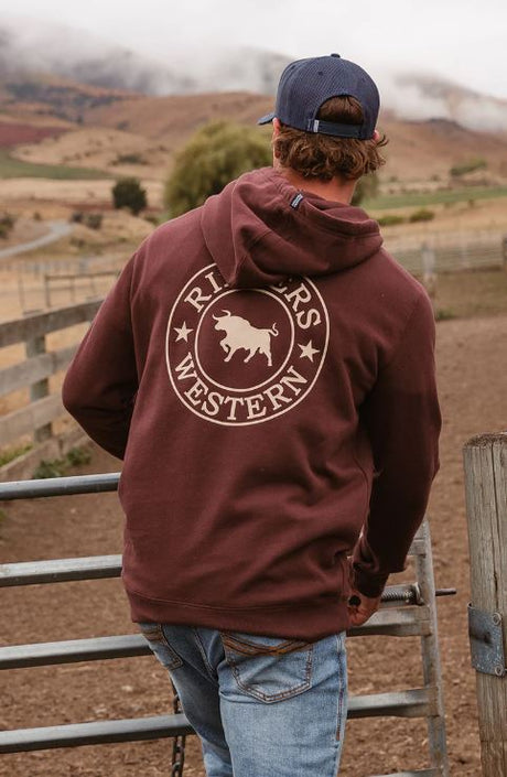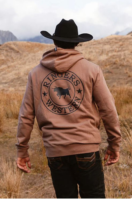 RINGERS WESTERN MENS SIGNATURE BULL HOODIE - CHOCOLATE/DARK SAND