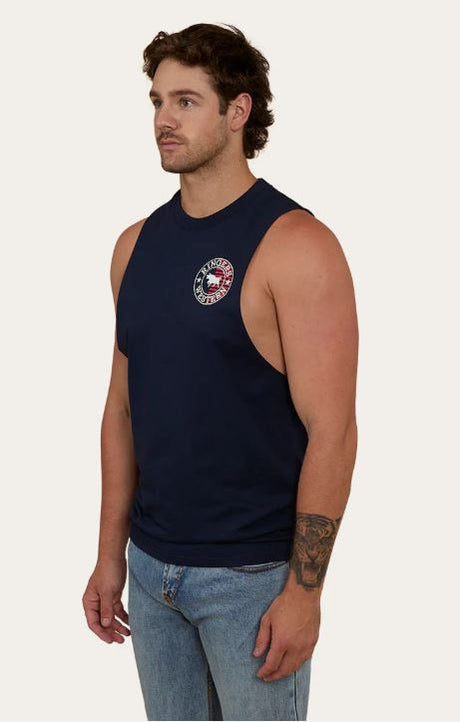 Ringers Western Mens Signature Bull Flag Muscle Tank Navy