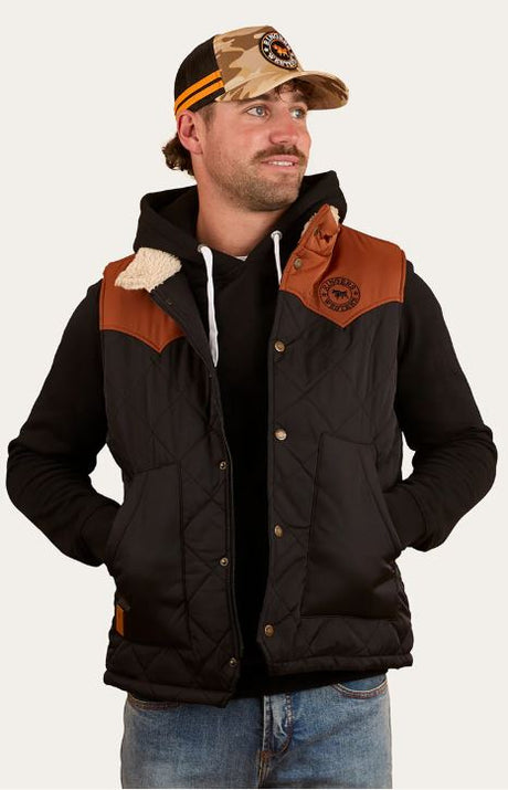 Ringers Western Mens McKinlay Puffer Vest - Black Tobacco
