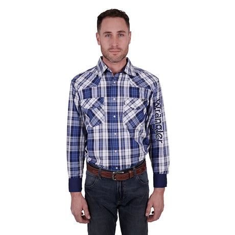 Wrangler Mens Tom Check Logo Western Long Sleeve Shirt