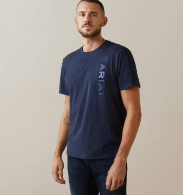 Ariat S25 Mens Vertical Logo SS Tee Classic Blue/White