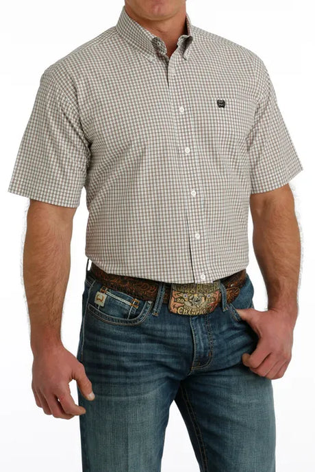 Cinch Mens Short Sleeve Shirt - White & Khaki Plaid
