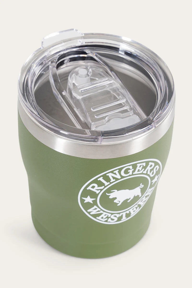 Designed with the home barista in mind - the Inskip tumbler is the perfect cup for your morning brew whether you're out bush or in the comfort of your own home. The Inskip tumbler is made with 18/8 kitchen-grade stainless steel and is rust-resistant. The double-walled vacuum insulation keeps your cold drinks cool and hot drinks hot until the very last drop. The acrylic sipping lid adds a layer of protection keeping your coffee contained. It features a printed Ringers Western logo on the front and back faces.
