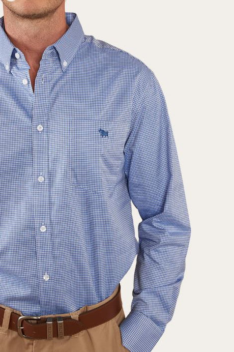 Ringers Western Mens Heritage Dress Shirt Blue Check