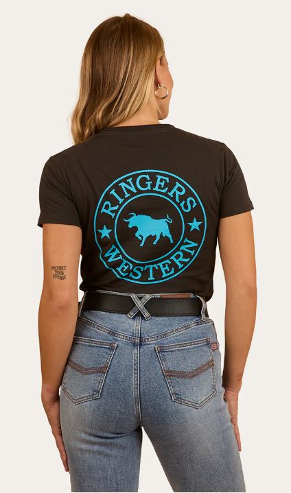 Ringers Western Womens Signature Bull Classic Fit T-Shirt Charcoal/Aqua