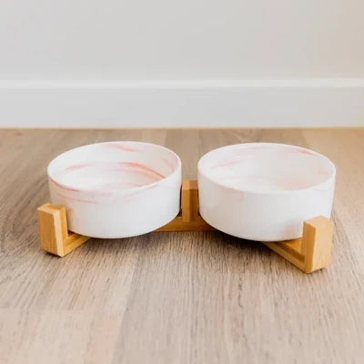 DG Paws Single Ceramic Bowl with Wooden Stand