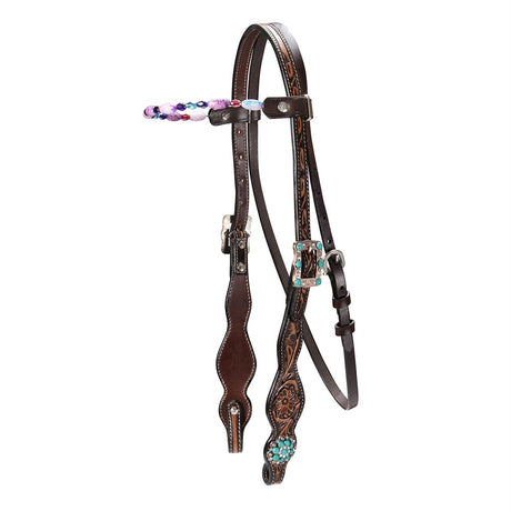 Weaver Turquoise Cross Browband Headstall - Medium Oil