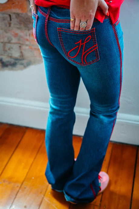 Grace In LA Cowhide Stitching Easy Fit Bootcut Jeans