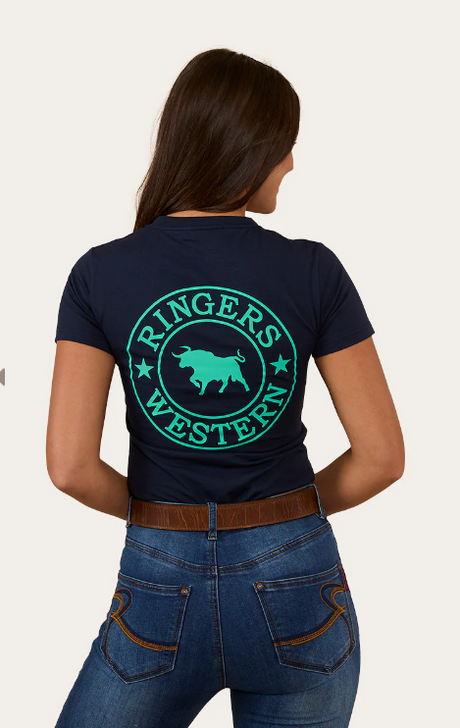 Ringers Western Signature Bull Womens T-Shirt Navy and Mint