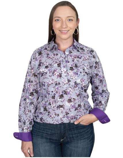 Just Country Womens Georgie Half Button Shirt Lilac Blossoms