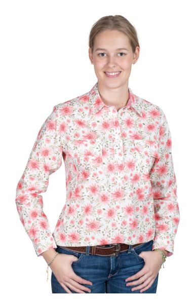 Just Country Womens Georgie Half Button White Gerbera Shirt