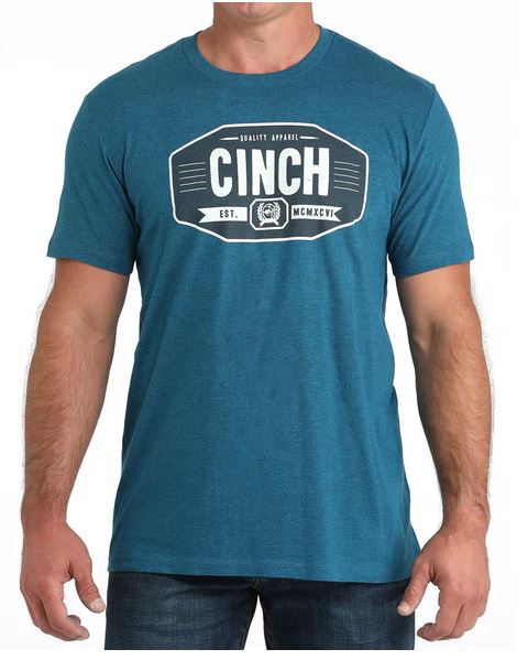 This teal cotton-poly crew neck is the casual, go-to tee you need to pack for every destination. Designed with a CINCH front screen print, our tee makes the perfect match for blue jeans and cowboy boots.