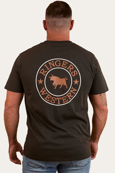 Ringers Western SS25 Mens Signature Bull TShirt Charcoal/Copper - Small is backordered and will ship as soon as it is back in stock.