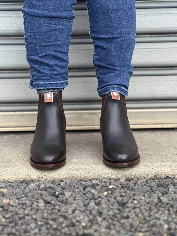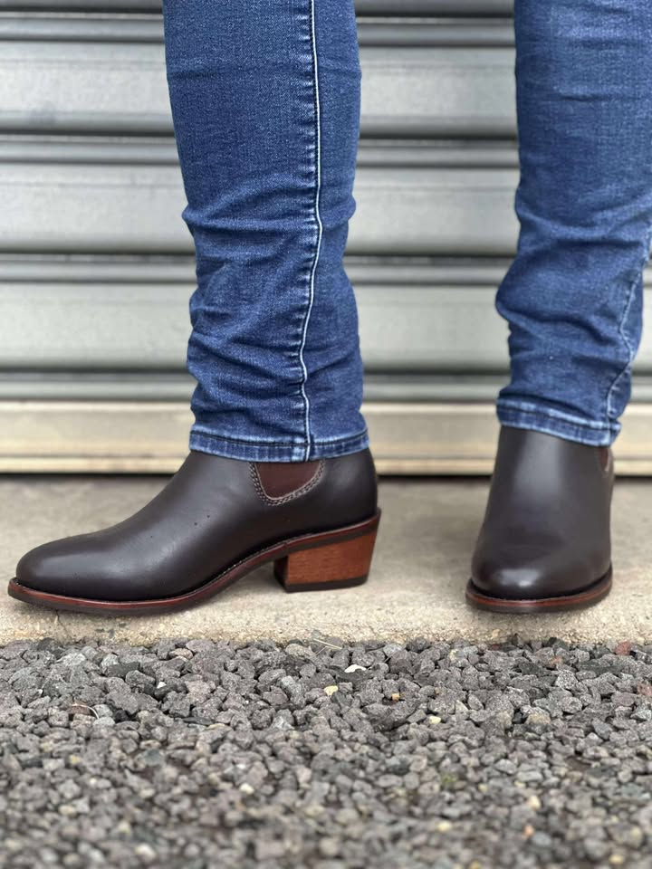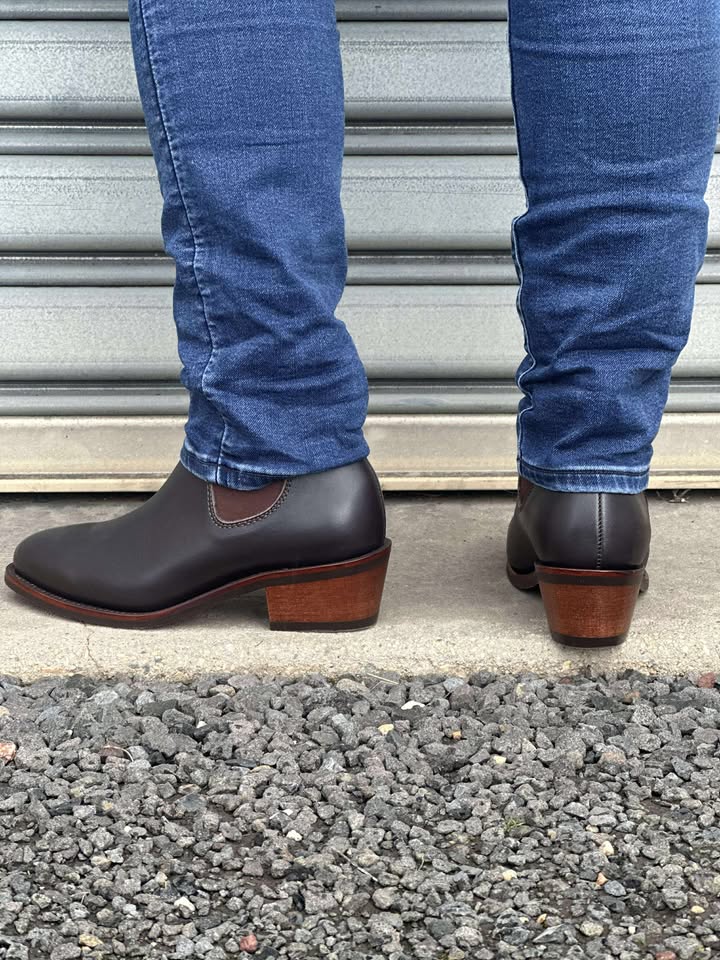Premium one-piece leather construction, round toe, full leather lining, genuine welt, premium elastic for durability and shape retention, long wearing replaceable rubber sole,4.5cm (1 ¾") block heel, designed and engineered in Australia, boot makers since 1926