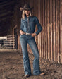 You deserve a fit that complements your every curve, which is exactly what the Women's Wrangler® Bespoke High Rise Trouser Jean was made to do. These denim trousers are crafted from a comfortable cotton blend featuring superior stretch, with innovative details specifically made to show off your shape. From the high-rise silhouette to a slim fit through the thigh and the vintage-inspired volume below the knee, these jeans will own the moment. Plus, they’re finished with Wrangler's signature five-pocket styling, the ‘W’ stitching across the pack pockets, and a rope logo patch to let everybody know we’ve got your back.